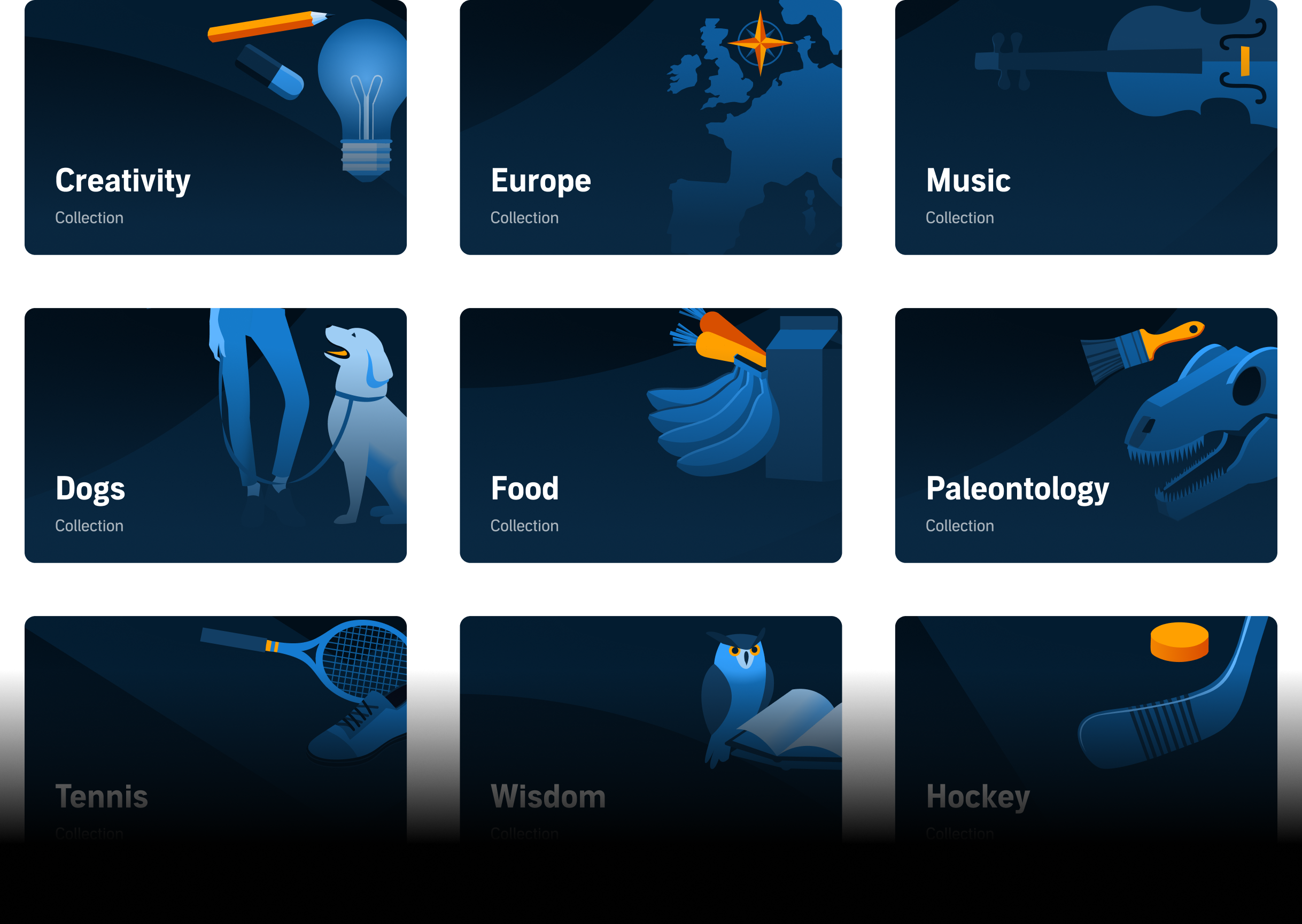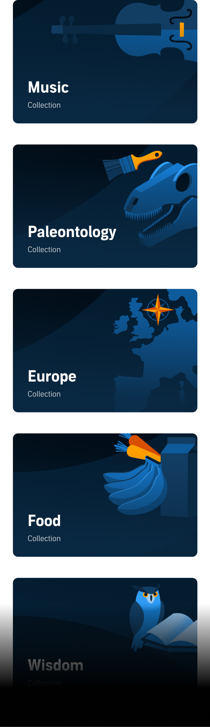 In collections that related to genres I used existing artwork in a more accessible part of the color scheme, for maximum asset usability.