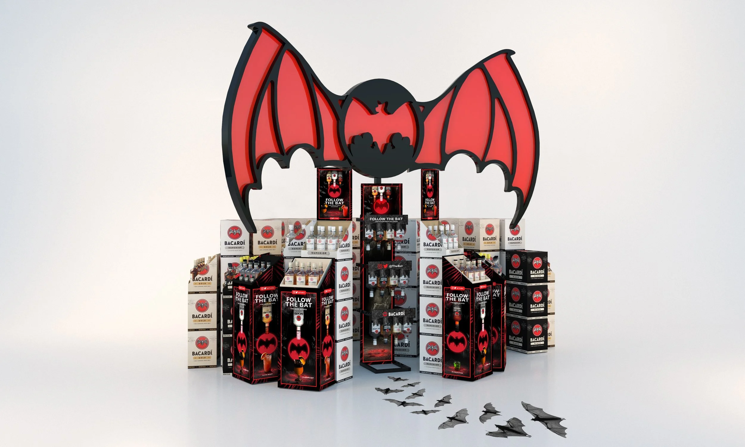 Bacardi asked us to help it own the Halloween season at retail, a natural fit for a brand with a bat as its logo. Why not take it one step further, making the Bacardi bat into your enigmatic guide to the most intriguing halloween cocktails and events of the season.