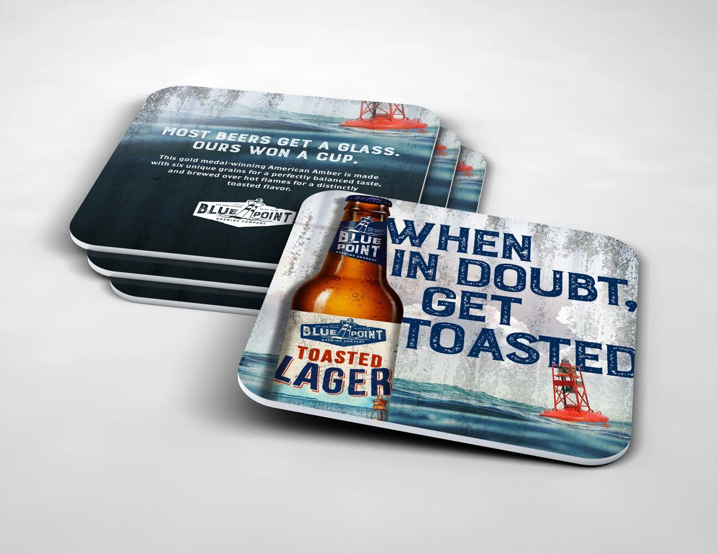 Bars get a limited supply of specially marked Blue Point mugs. Be one of the twenty who buy one and you’re in the club. You’ll get a matching keychain with your number on it and we’ll keep your mug in the “slip” at the bar. Every time you come in, your first Toasted Lager is on the house.