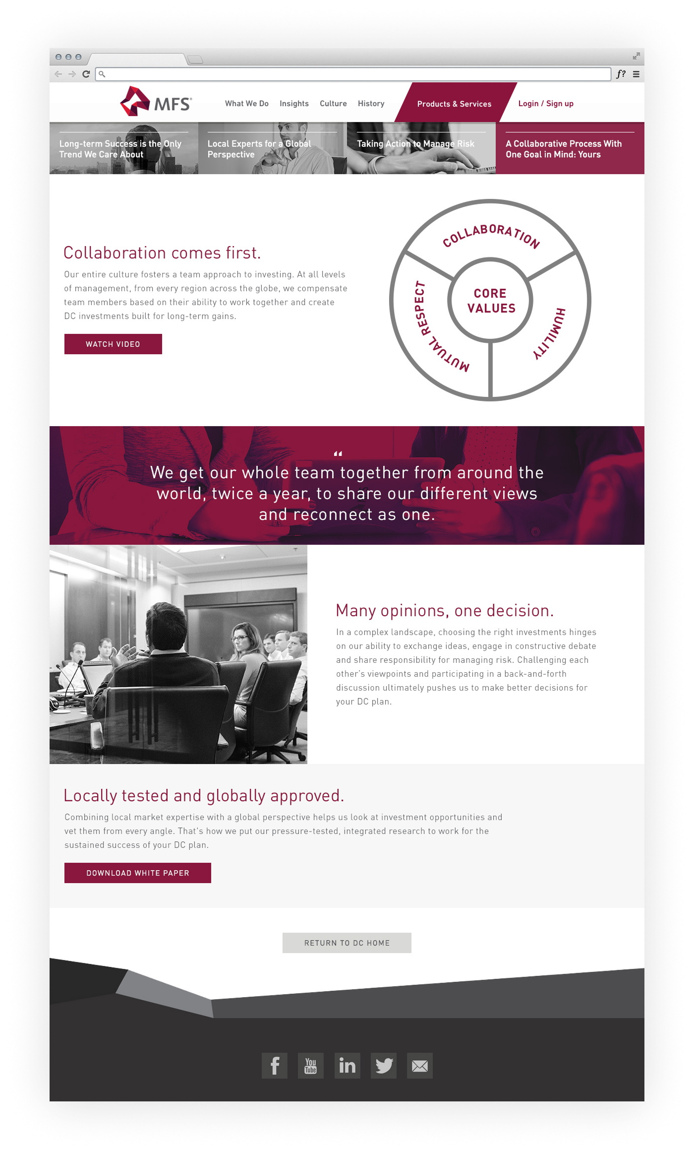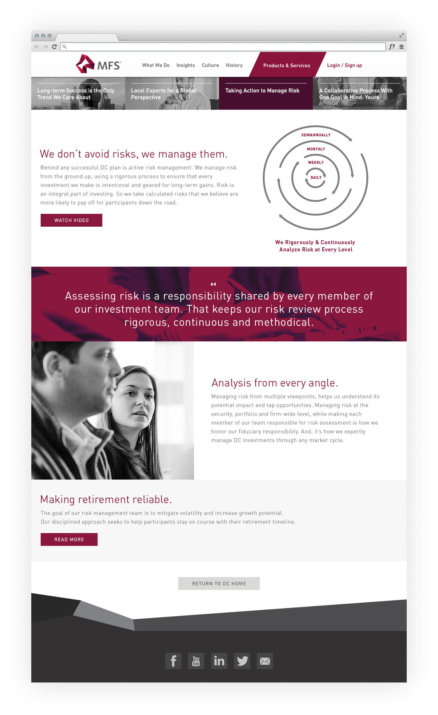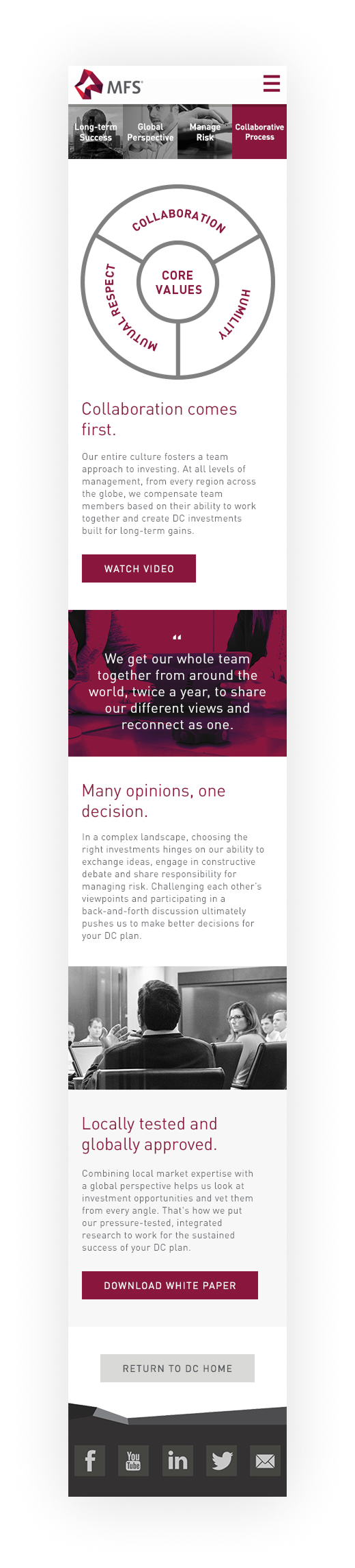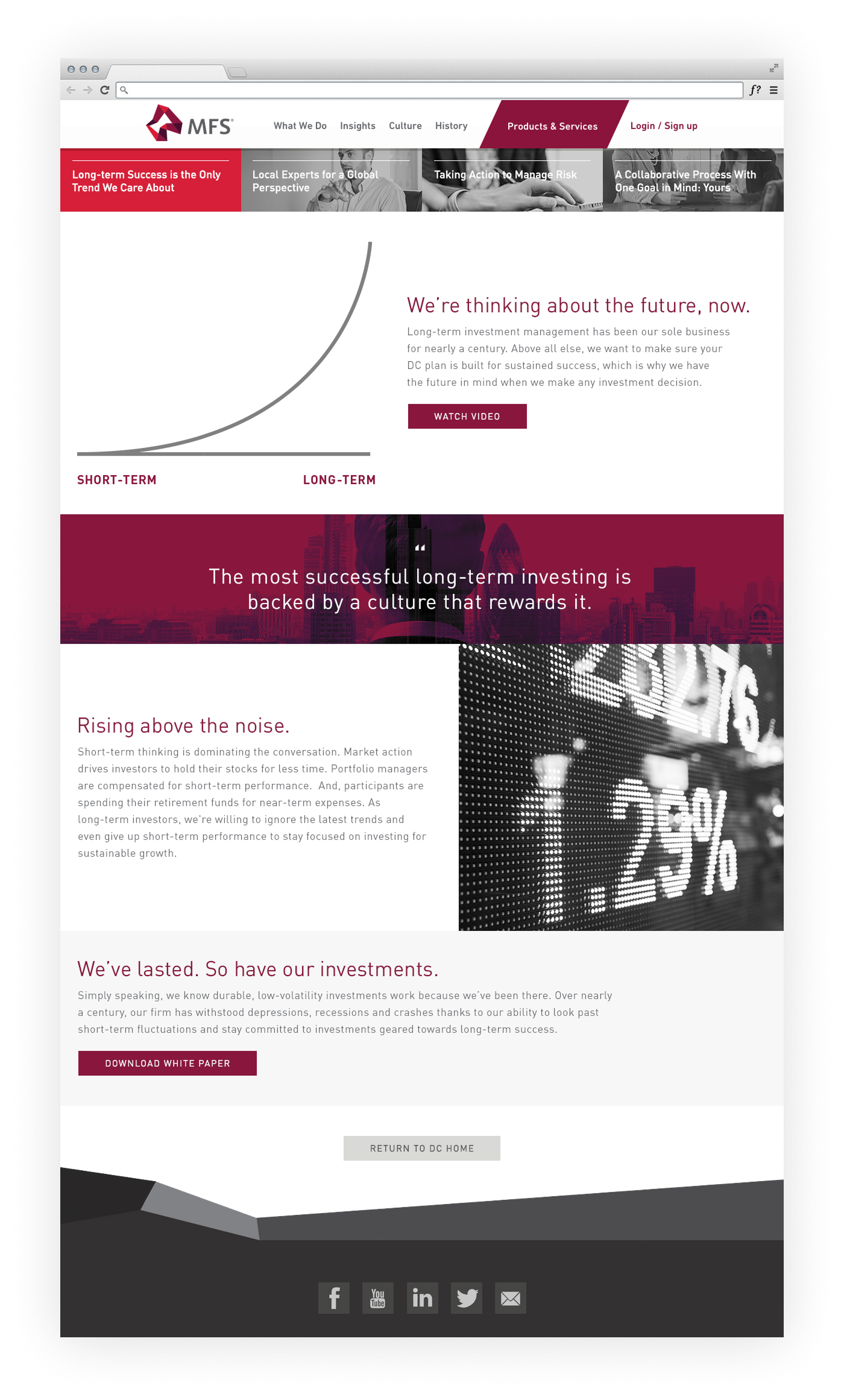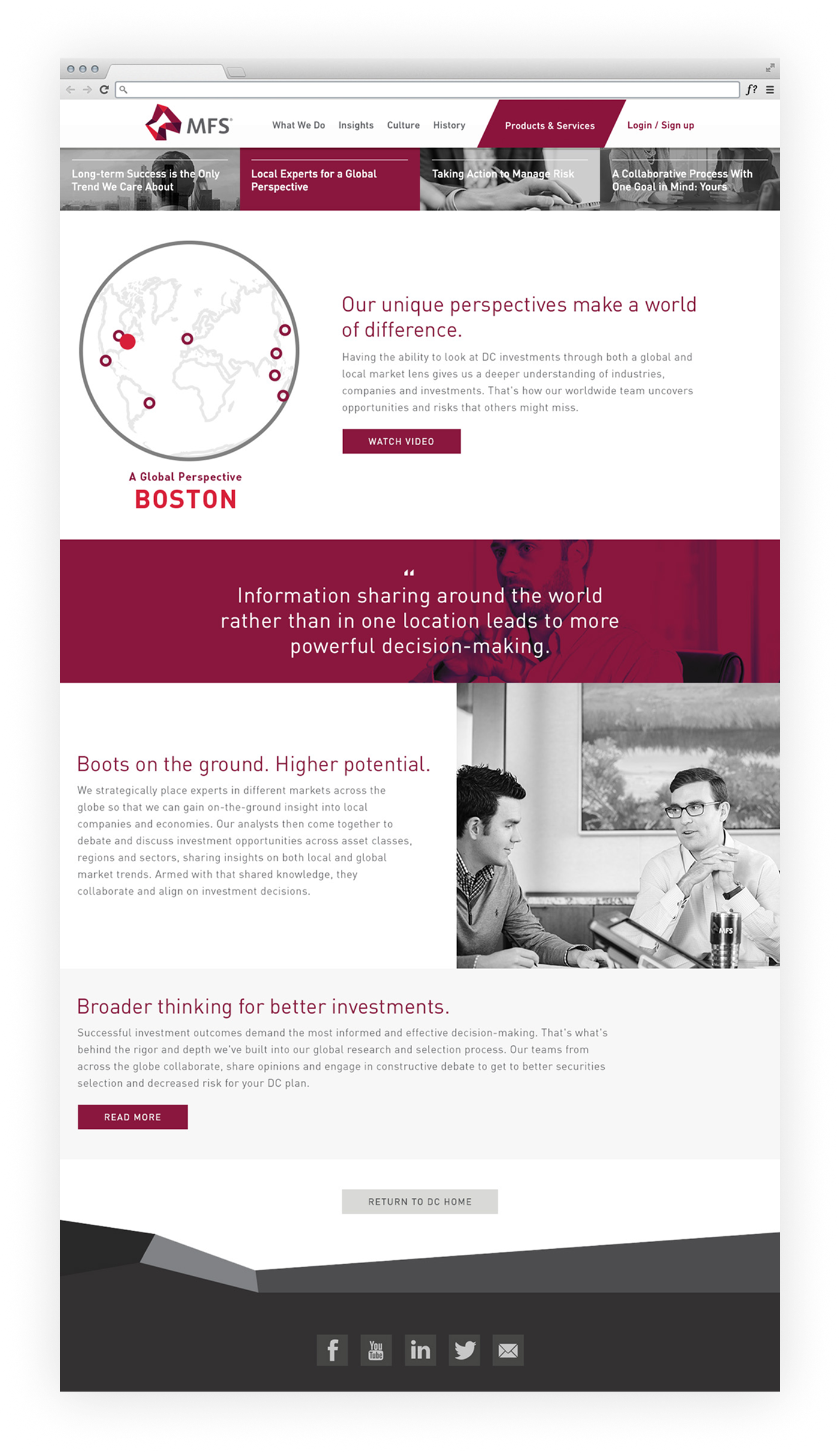 MFS is an investment management company with an long history of impressive results. With that in mind, they wanted a forward-looking Defined Contributions (DC) web presence that also made people aware of the depth of experience they bring to investment management.